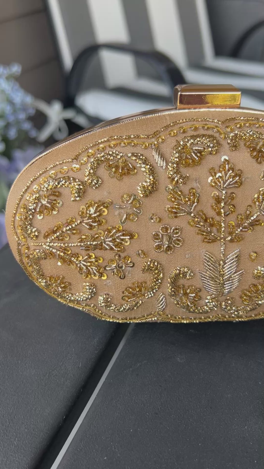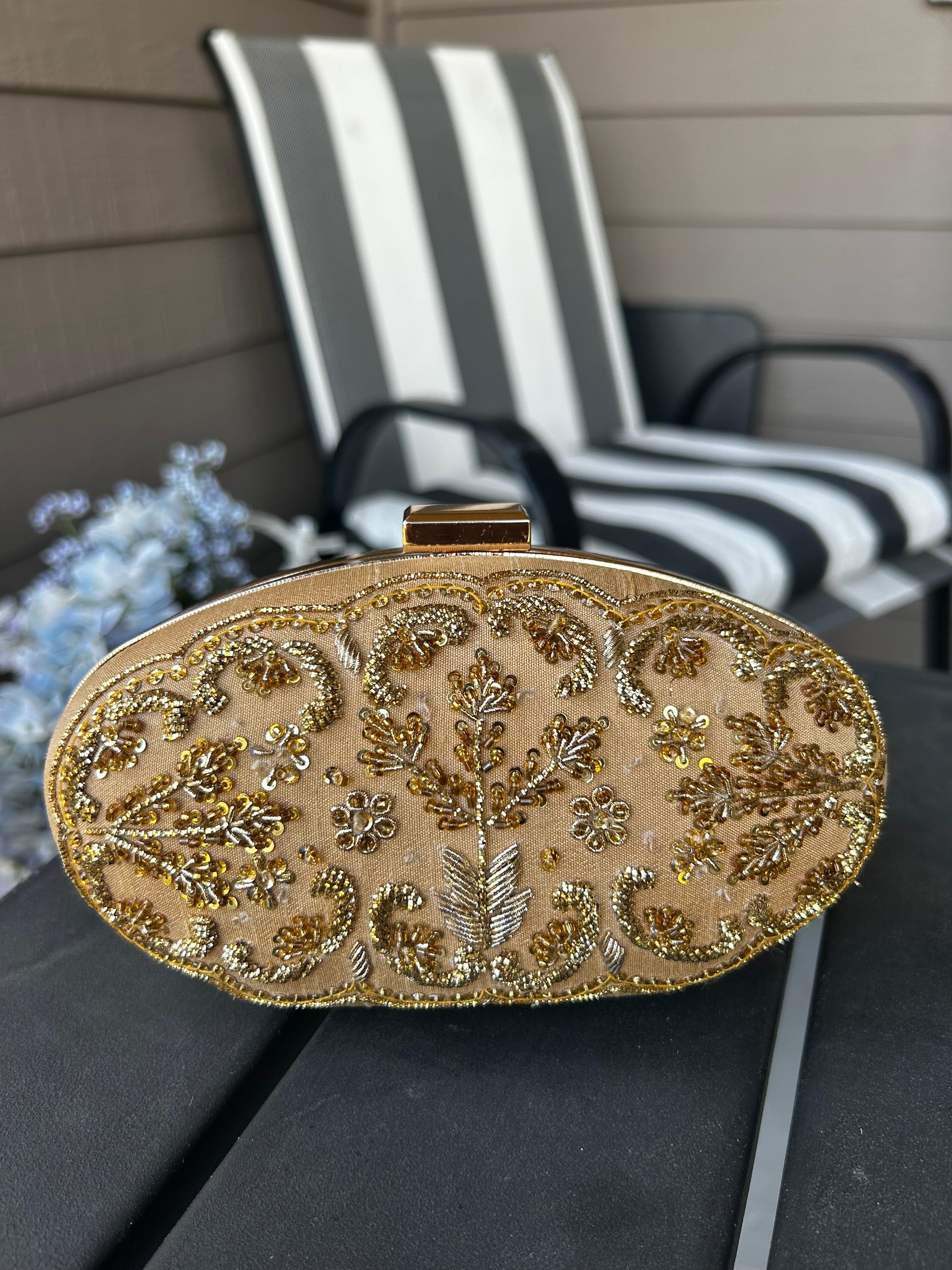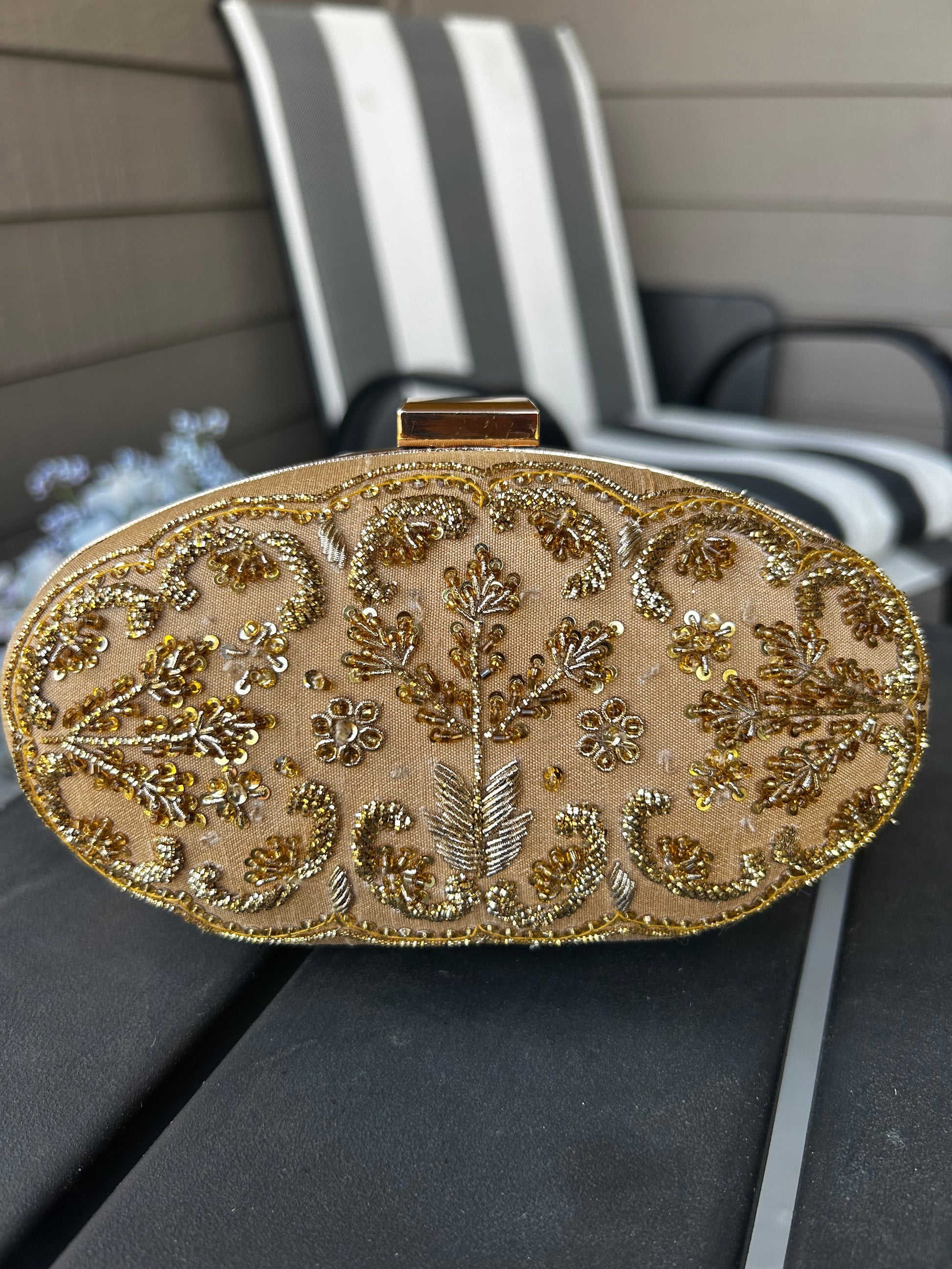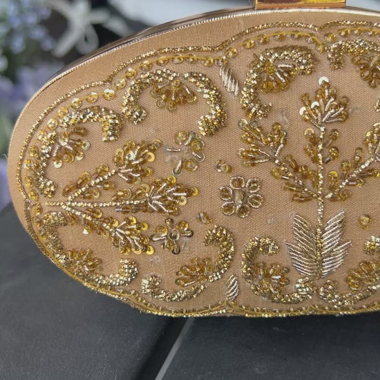 Elegant Hand-Embroidered Gold Clutch“ A Timeless Wedding Essential